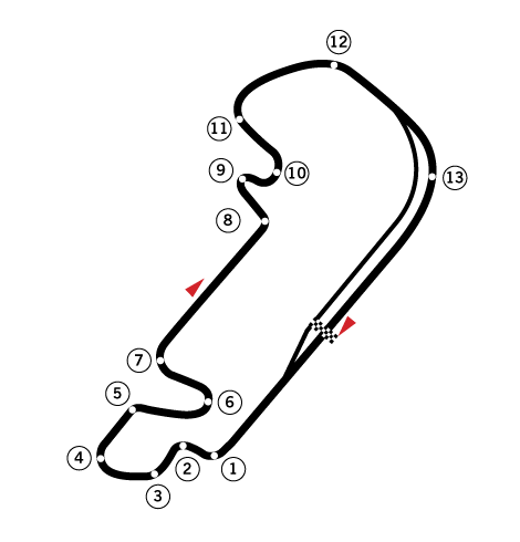 Informationen zur Streckenvariante - Bei der GP-Variante handelt es sich um einen Km langen Rundkurs, welcher in dieser Layout-Variante von 2000 bis 2007 befahren wurde. - Die Streckenvariante stellt eine erhöht Herausforderung für die Motoren und eine normal hoch Belastung für die Bremsen dar, weshalb der Treibstoffverbrauch normal hoch ausfällt.