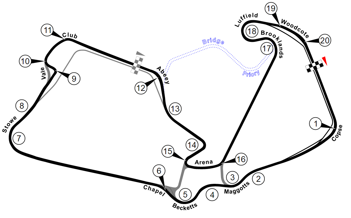 Informationen zur Rennstrecke - Der Silverstone Circuit wurde als permanente Rennstrecke in Silverstone (Land: England, Bundesstaat: England) erbaut. - Die Rennsport-Anlage wurde im Jahre 1947 auf einem Flughafen eröffnet und befindet sich seither im Besitz des Streckenbetreibers British Racing Drivers' Club (BRDC). - Meteorologischen Aufzeichnungen zufolge fällt an 170 Tagen jährlich (also 47 % des Jahres) Regen in Silverstone. - Die Strecke bringt durch ihren rauer Asphalt-Belag einen erhöht Reifenverschleiß mit sich.