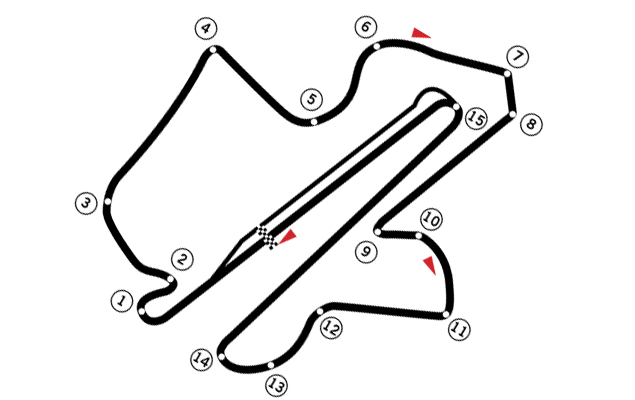Informationen zur Streckenvariante - Bei der GP-Variante handelt es sich um einen Km langen Rundkurs, welcher in dieser Layout-Variante von 1999 bis 2025 befahren wurde. - Die Streckenvariante stellt eine erhöht Herausforderung für die Motoren und eine normal hoch Belastung für die Bremsen dar, weshalb der Treibstoffverbrauch erhöht ausfällt.