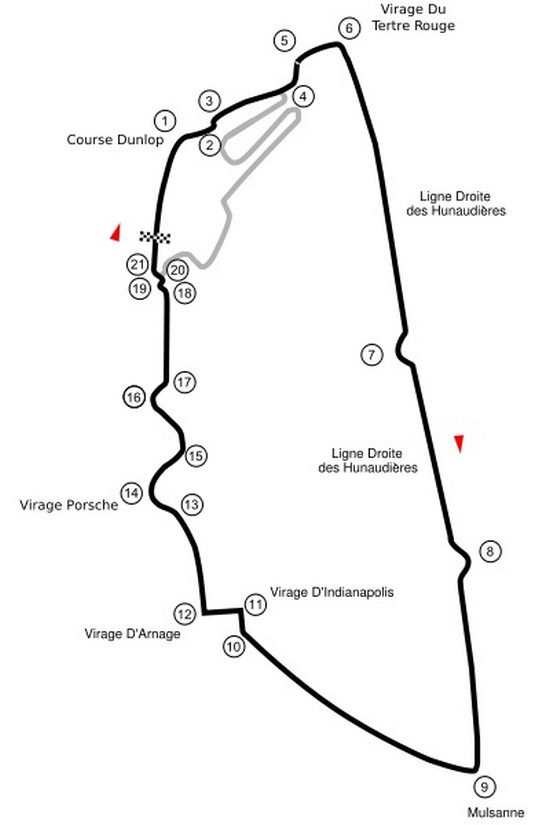 Die Strecke verband ursprünglich die Orte Le Mans, Mulsanne im Süden und Arnage im Südwesten. Beim ersten Rennen 1923 und in den 1920er Jahren führte die Strecke von den damaligen Boxenanlage in der Rue de Laigné direkt in die Innenstadt von Le Mans, und verließ nach einer engen Rechtskurve in der Nähe der Brücke Pontlieu über eine lange Gerade wieder die Stadt.