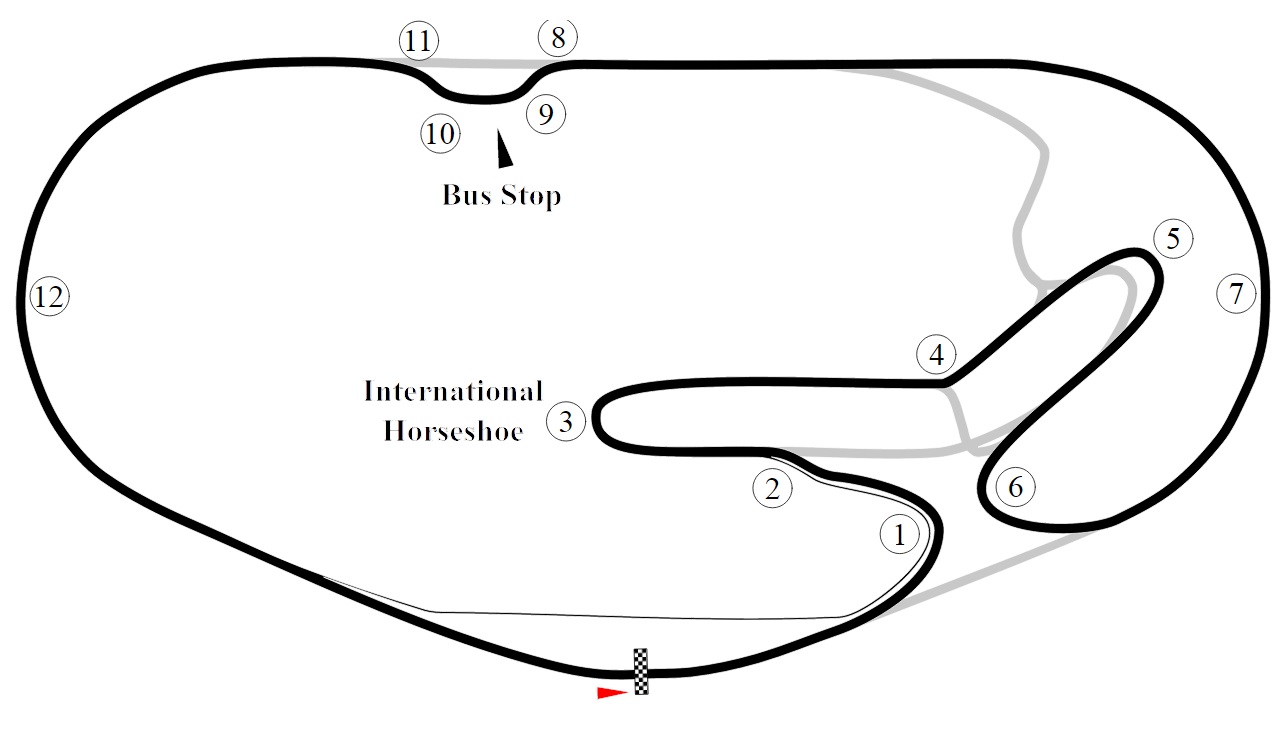 Informationen zur Streckenvariante Bei der Oval-Variante handelt es sich um einen Km langen Tri-Oval, welcher in dieser Layout-Variante seit 1959 befahren wird. Die Streckenvariante stellt eine erhöht Herausforderung für die Motoren und eine sehr gering Belastung für die Bremsen dar, weshalb der Treibstoffverbrauch erhöht ausfällt.