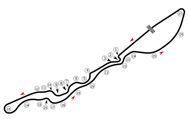 Informationen zur Streckenvariante Bei der GP-Variante handelt es sich um einen Km langen Stadtkurs, welcher in dieser Layout-Variante seit 2021 befahren wird. Die Streckenvariante stellt eine erhöht Herausforderung für die Motoren und eine erhöht Belastung für die Bremsen dar, weshalb der Treibstoffverbrauch gering ausfällt. - Tilke zeichnete eine sehr flüssige Strecke mit vielen schnellen Richtungswechseln. Um das Überholen zu erleichtern, wurden am Ende der längeren Geraden Schikanen eingebaut. Der Kurs soll für drei DRS-Zonen ausgelegt sein.