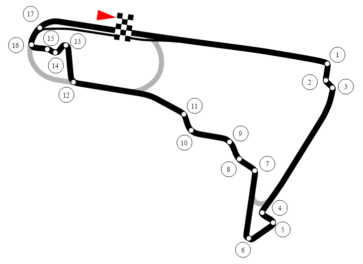 Informationen zur Streckenvariante Bei der GP-Variante handelt es sich um einen Km langen Rundkurs, welcher in dieser Layout-Variante seit 2015 befahren wird. Die Streckenvariante stellt eine erhöht Herausforderung für die Motoren und eine normal hoch Belastung für die Bremsen dar, weshalb der Treibstoffverbrauch gering ausfällt.