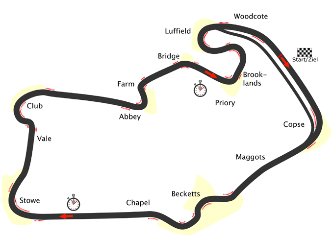 Der Silverstone Circuit wurde als permanente Rennstrecke in Silverstone (England, England), 156 Meter über dem Meerespiegel, erbaut. Die Rennsport-Anlage wurde im Jahre 1947 eröffnet und befindet sich seither im Besitz des Streckenbetreibers British Racing Drivers' Club (BRDC). Meteorologischen Aufzeichnungen zufolge fällt an 170 Tagen jährlich (also 47 % des Jahres) Regen in Silverstone. Die Strecke bringt durch ihren rauer Asphalt-Belag einen erhöht Reifenverschleiß mit sich.